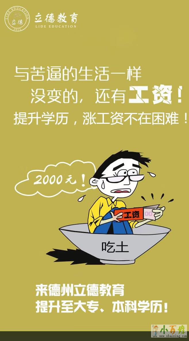 有一个朋友,之前就没有想在德州这边长久工作发展,等工作了几年后工作各方面都稳定了,也不想回老家了小百姓网www.xbaixing.com。小孩子面临着上学的问题oXD。这个时候才想起考学历,但是学历提升需要两年半至三年的时间,学历可以用来积分入户,小孩子上学就有了保障了www.xbaixing.com。你看这个时候是不是有点亏原文www.xbaixing.com。所以说要提前规划EtSU。