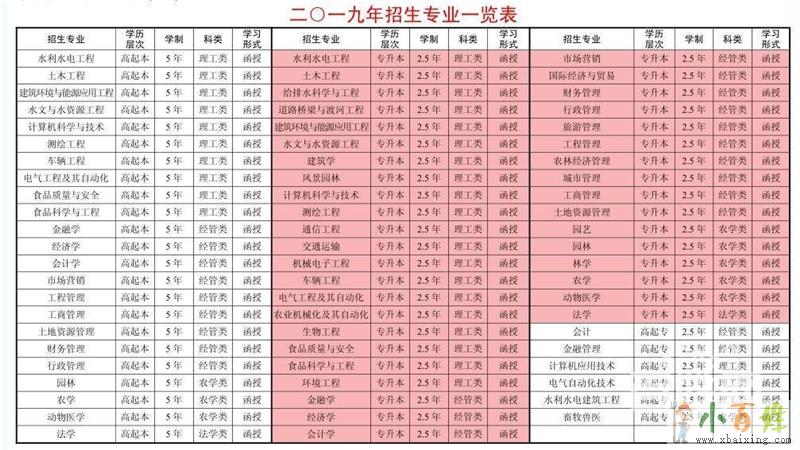 专/本科:农林经济管理、农学、园艺、植物保护、动物科学、动物医学、作物生产技术、食品营养与检测、畜牧兽医、社区管理与服务、广告学、广播电视编导等等。
